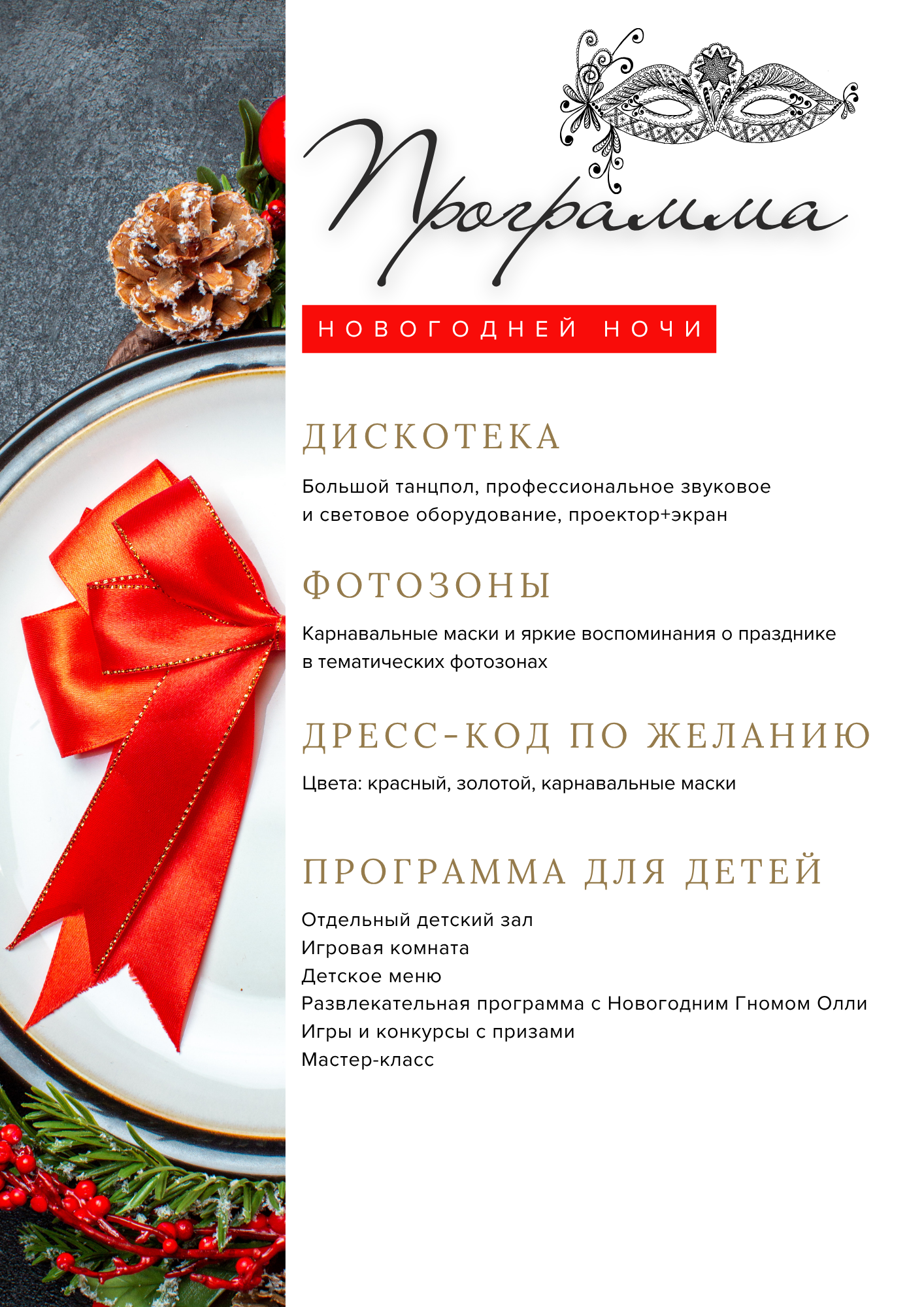 Подробно ознакомиться с программой и новогодним меню можно здесь